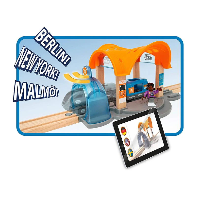 Brio 33973 Smart Tech Sound Bahnhof mit Action Tunnel für Holzeisenbahn
