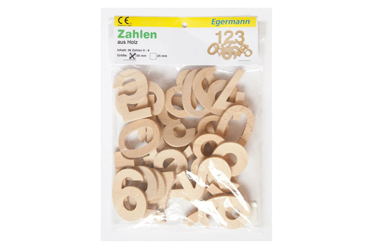 Egermann 2277 Zahlen 0-9, 50mm, 30 Stück aus Holz