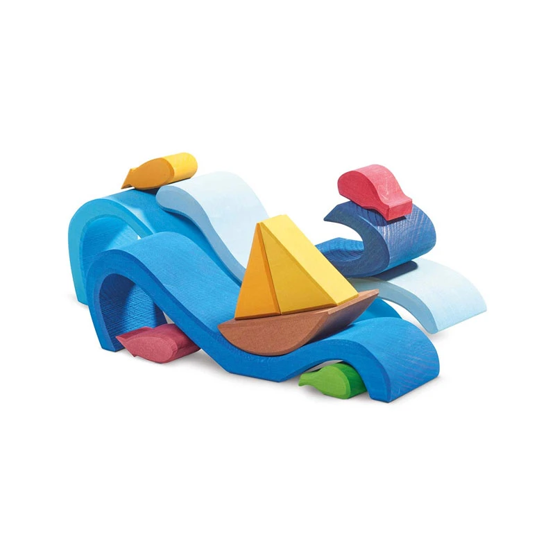 Glückskäfer 523188 „Wellen-Boot“ 11-teilig Holzbausteine bunt