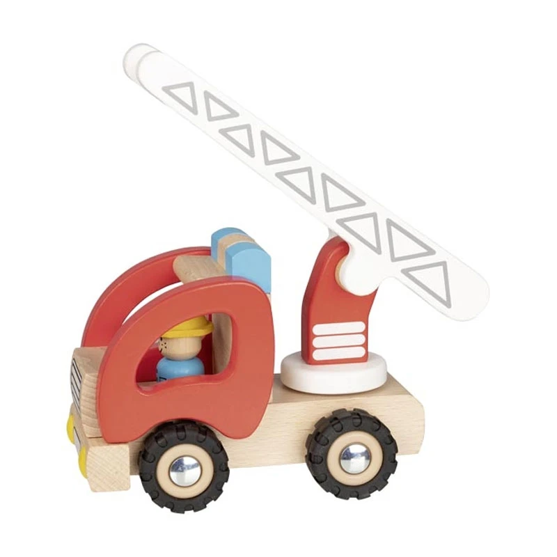 goki 55789 Holzauto „Feuerwehr Leiterwagen“ rot/weiss