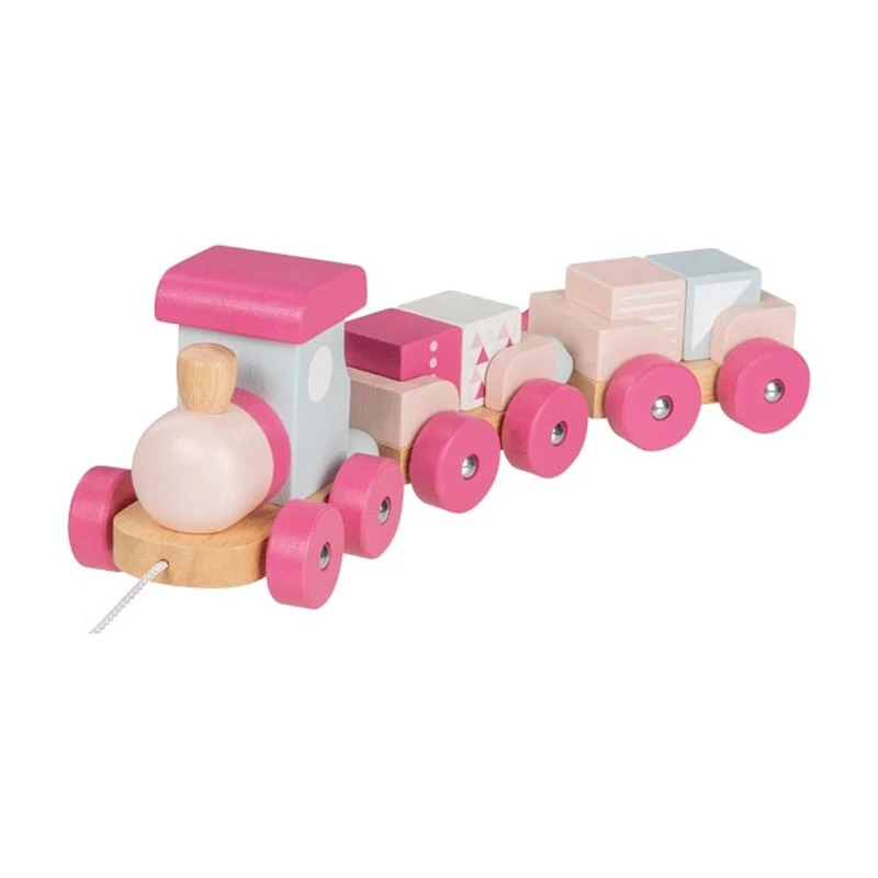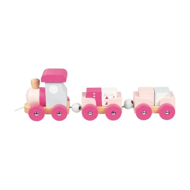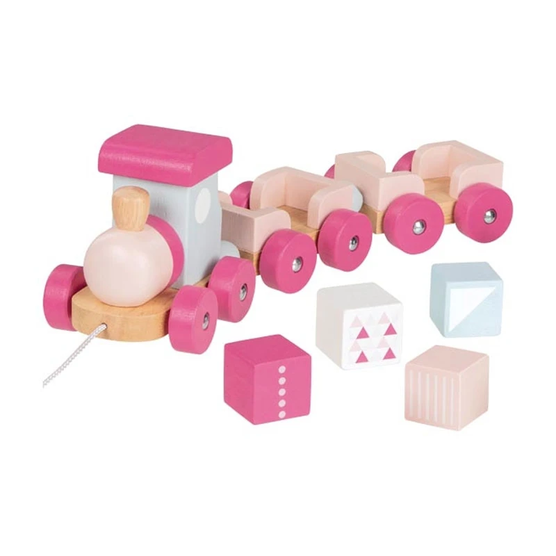 goki 55872 Holzzug „Stockholm“ rosa mit Bausteinen