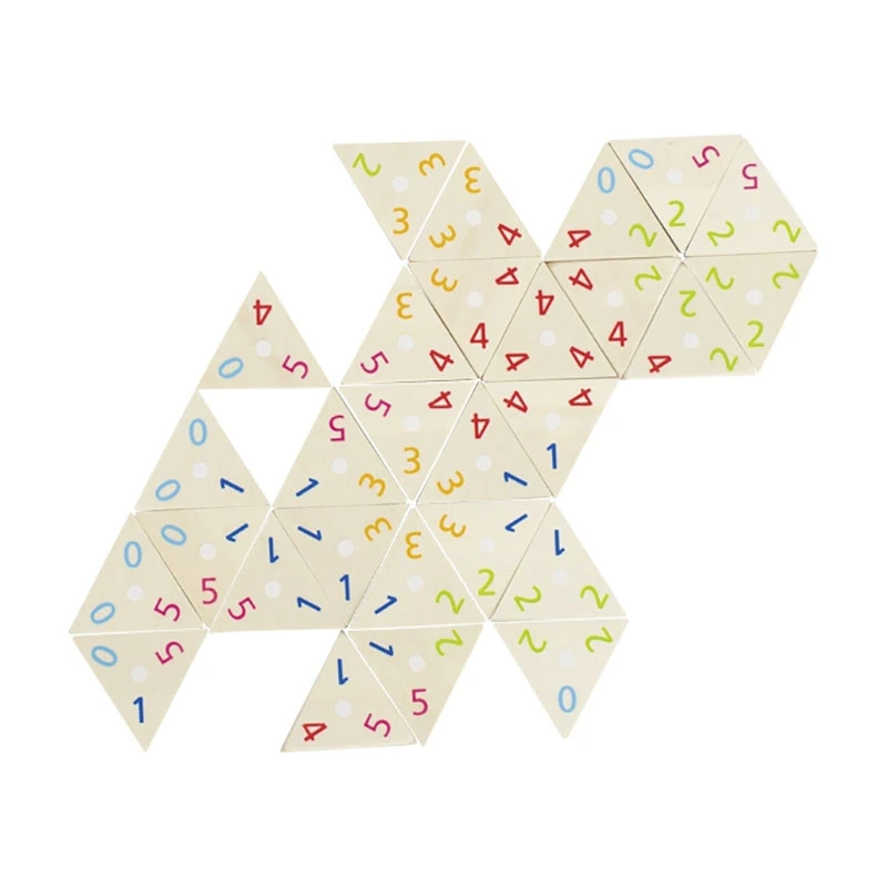 Domino spielen macht Spass . Beim Tri-Domino wird der Spass verdreifacht! Ziel: Die dreieckigen Spielsteine müssen so angelegt werden, dass ein großes Dreieck mit einer 4 – oder 5fachen Kantenlänge ensteht. 2 – 4 Spieler werden eine Menge Freude an dem Spiel haben.