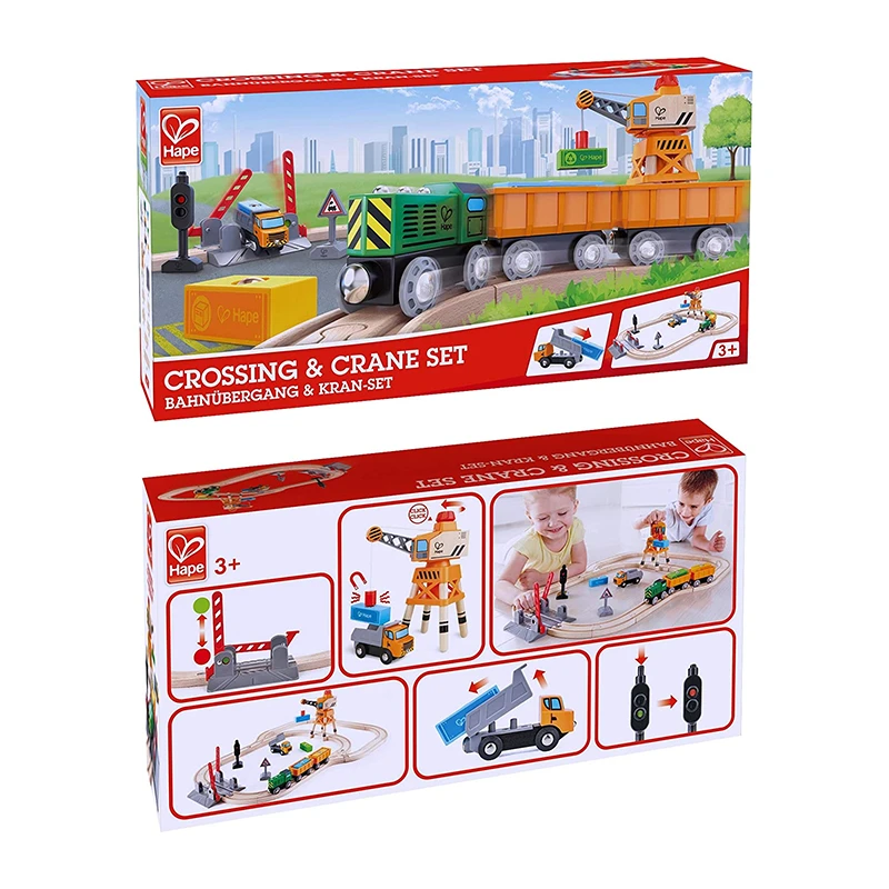 Hape E3732 Bahnübergang & Kran-Set für Holzeisenbahn
