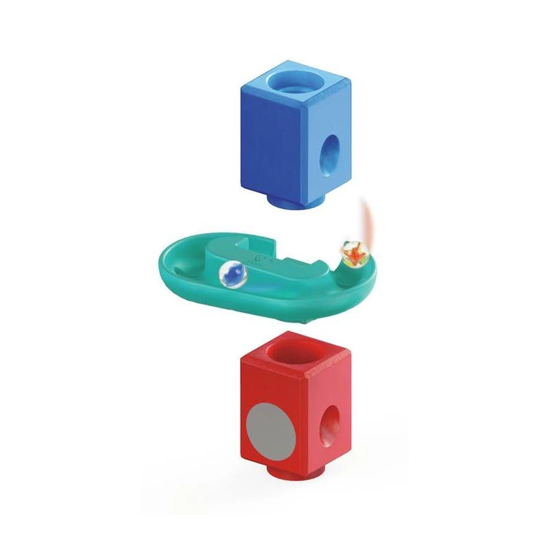 Durch die Rinnen an den farbigen Blöcken brauchen deine Murmeln länger, um den Weg durch die Quadrilla zu finden. Sieht nicht nur toll aus, sondern zeigt auch neue Wege, um die Murmel zum Ziel zu befördern.