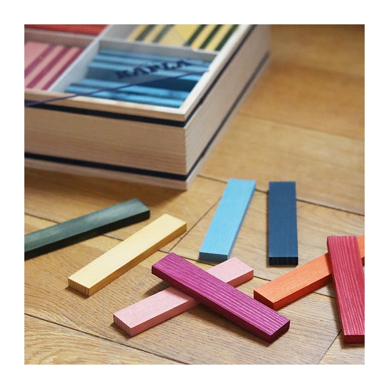 KAPLA-Holzplättchen Octocolor 100er Box Pinienholz 8 Farben Bausteine