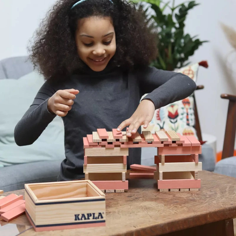 Die KAPLA-Holzplättchen werden mit sehr großer Präzision hergestellt und ermöglichen so außergewöhnliche Konstruktionen. Das verwendete Material ist Pinienholz aus nachhaltiger Forstwirtschaft. Mit KAPLA® zu spielen weckt die Phantasie und den künstlerischen Instinkt in jedem von uns, vom kleinen Baumeister bis zum Architekten mit ausgefallenen Ambitionen… und die Möglichkeiten sind unbegrenzt!