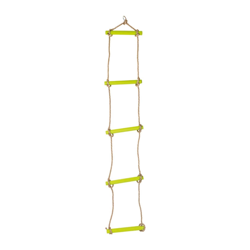 Komm, wir pflücken ein paar Äpfel! Sprosse für Sprosse lassen sich mit dieser Strickleiter aus robustem und wetterbeständigem Material die Bäume im Garten kinderleicht erklimmen.
