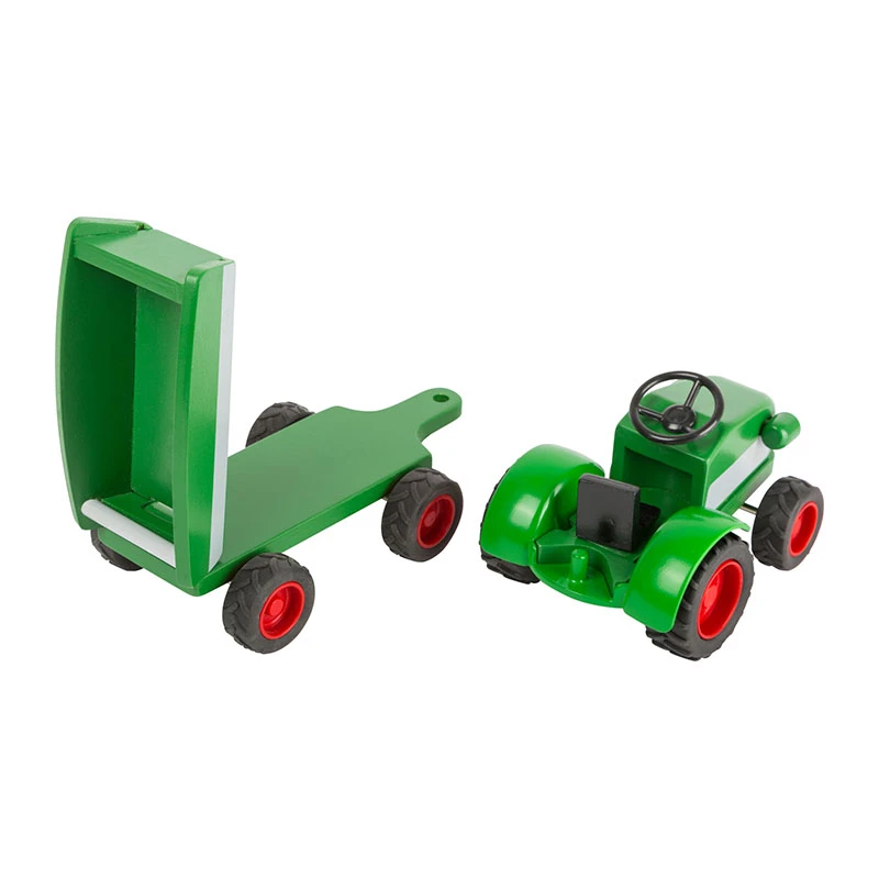 - Maße: Traktor: ca. 15 x 11 x 9,5 cm, Anhänger: ca. 19 x 11 x 8 cm