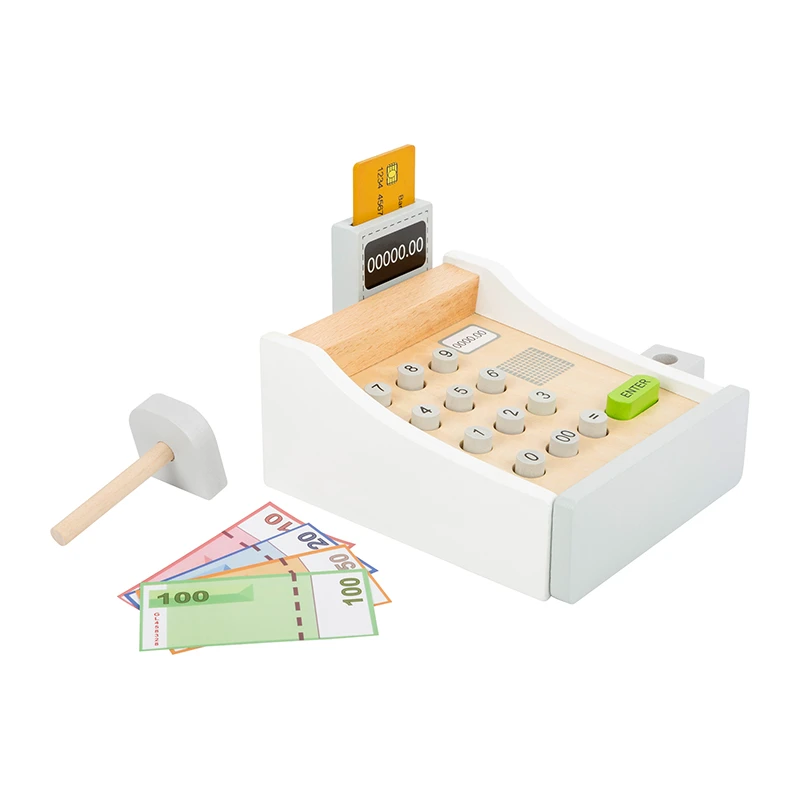 - Spielkasse aus Holz inkl. Scanner, Kartenlesegerät, Spielgeld und Kreditkarte aus Holz