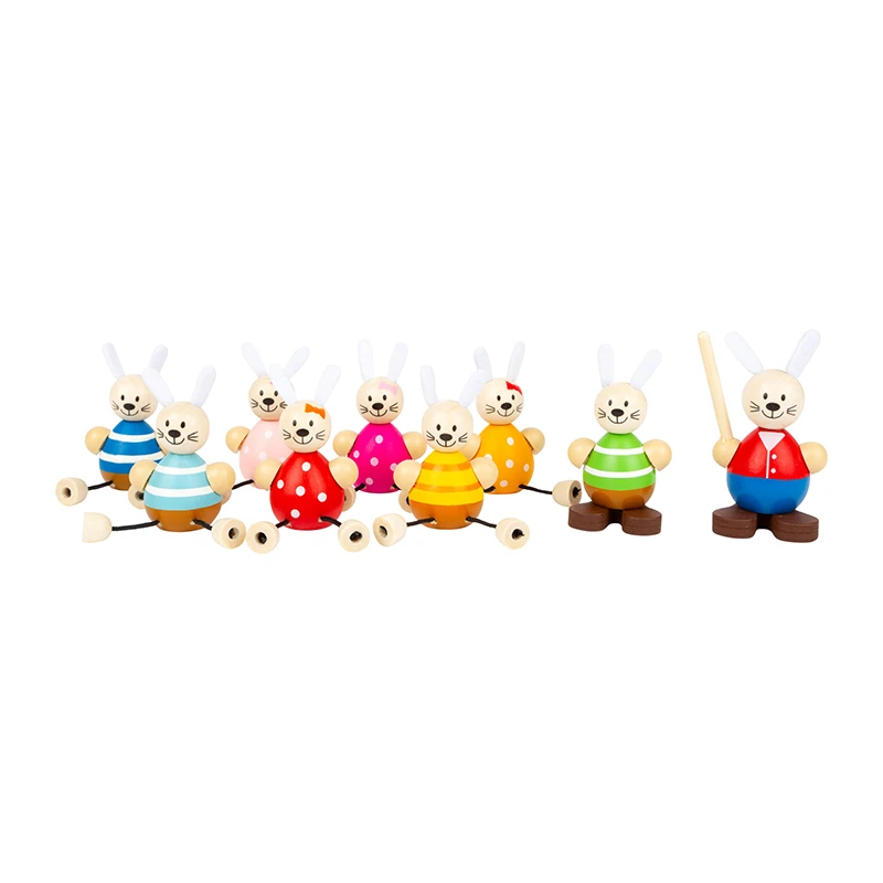 Es gibt viel zu lernen für kleine Osterhäschen! Acht niedliche und modern gestaltete Hasenjungen und -mädchen besuchen diese Hasenschule aus FSC 100%-zertifiziertem Holz. Der Lehrer, der vor der Klasse steht, lehrt die Häschen alles, was sie wissen müssen. Vier Schulbänke und eine Tafel vervollständigen das 14-teilige Spielset. Im Rollenspiel können so nicht nur angehende Schulkinder das Schulleben nachspielen und kennenlernen.