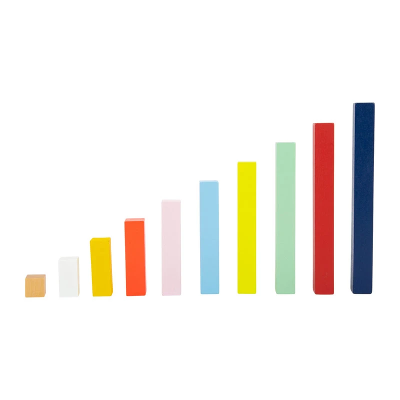 Rechenstäbchen trainieren die Vorstellungskraft und das logische Denken und vermitteln gleichzeitig ein Verständnis für Größen und Farben. Beim Zählen, Vergleichen und Sortieren, sowie bei der Addition, Subtraktion, Division und Multiplikation sind sie außerdem die idealen Begleiter für kleine und große Rechenmeister! In der passenden Holzbox können alle Rechenstäbchen einsortiert und verstaut werden.