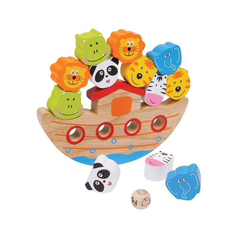 Hier sollen die Tierpaare so gestapelt werden, dass die Arche nicht aus dem Gleichgewicht kommt und ihre Passagiere herunterfallen! Ein schönes Geschicklichkeitsspiel aus bunt lackiertem Holz zur Schulung der Feinmotorik und Geduld! Ein kleiner Würfel zeigt mit Symbolen an, welches Tier auf die Arche gesetzt werden soll.