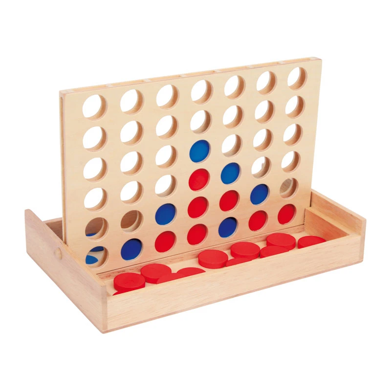 Eine hölzerne Reiseversion des beliebten Klassikers in einer bedruckten Geschenkbox. Auch die Spielsteine sind aus Holz. Die Spielfläche lässt sich zum Ausleeren schräg stellen.