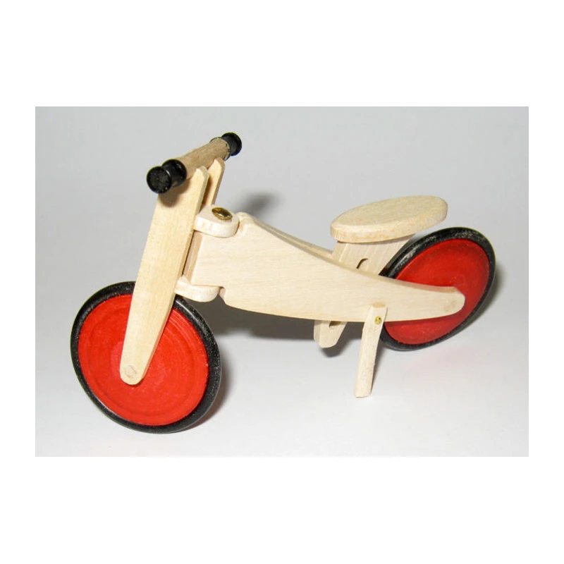 Dieses beliebte Kinderfahrzeug haben wir mit gummibereiften, rot lackierten Holzrädern ausgerüstet. Die Räder und der Lenker sind leichtgängig gelagert. Der Sitz ist höhenverstellbar.