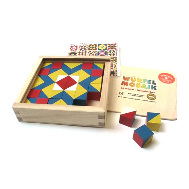 Liebe Handarbeit 46106 Würfel Mosaik, 36 Würfel in Holzkasten Grundfarben