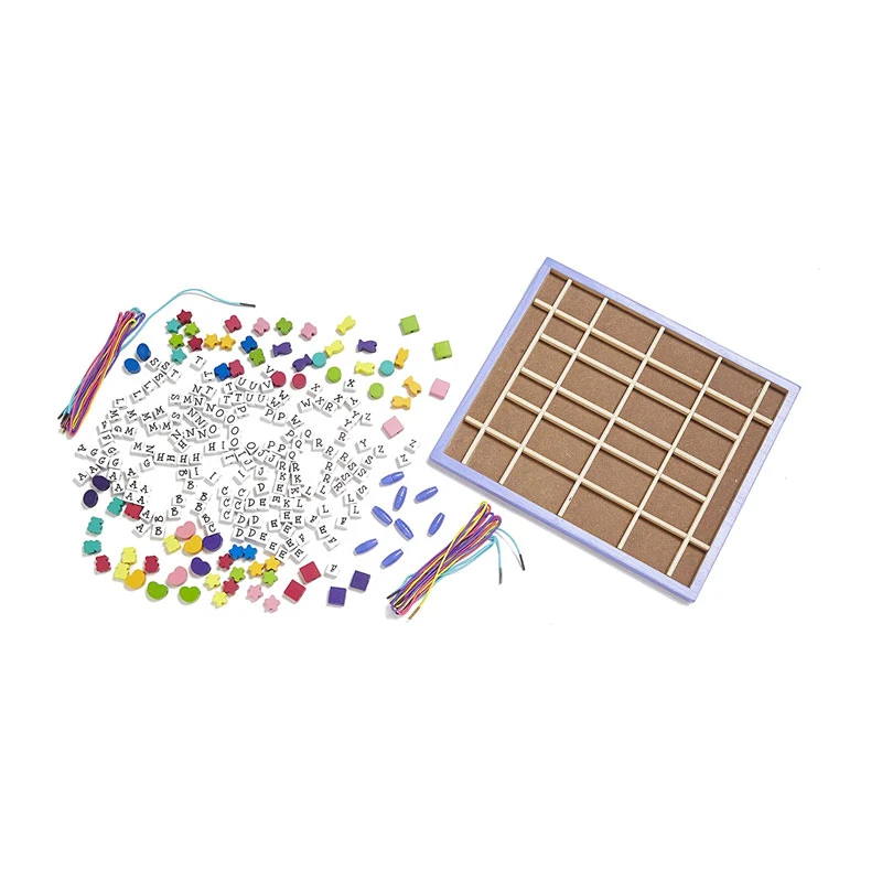 Wie viele Möglichkeiten kann Ihr kleiner Juwelier „schön“ buchstabieren? Viele hölzerne Buchstaben-Perlen, wunderschöne Formen und farbenfrohe Schnürsenkel sind in einem praktischen Holztablett verpackt, damit Kinder fantastische Armbänder und Halsketten herstellen können.