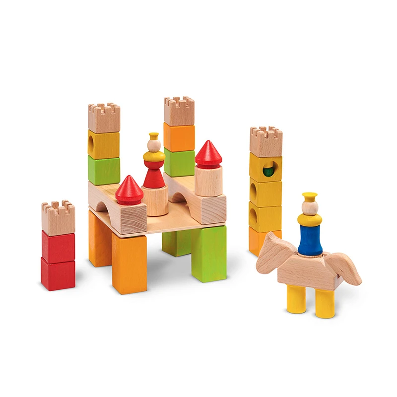 Ein geniales und einzigartiges Steckbaustein-Prinzip, was sich von allen anderen Bauklötzen unterscheidet. Die hochwertigen cubio-Elemte können ineinandergesteckt werden und verhindern schnelles Umfallen. Aus besten Hölzern hergestellt und mit absolutem Spielwert versehen. Speichelecht und nicht verschluckbar! Mit Spielfiguren König, Königin wie auch Pferd bietet das Set neben den variablen cubio-Bausteinen insgesamt 48 abwechslungsreiche Bauteile! Es lässt sich mit allen anderen cubio-Produkten kombinieren und regt von klein bis groß „märchenhafte“ Fantasien an.