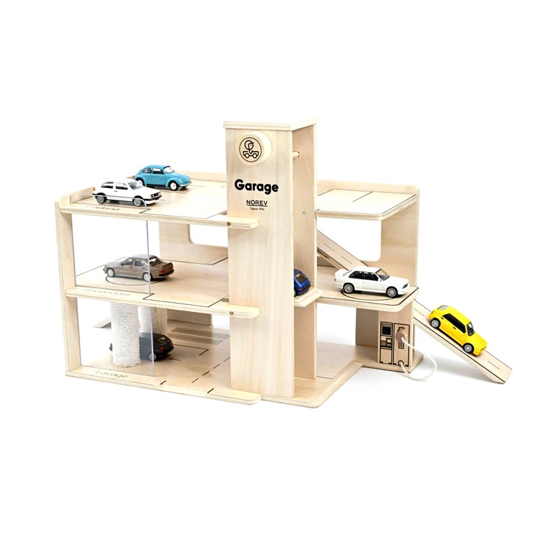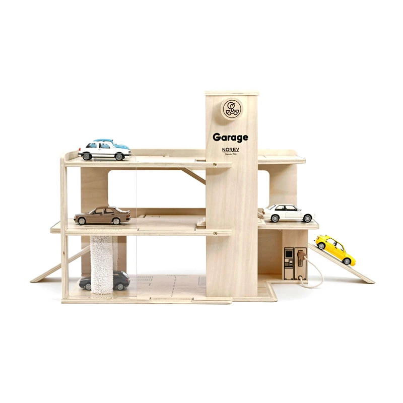 Unsere hölzerne Kindergarage verbindet Spielwert und zeitgenössisches Design. Ihr puristischer Stil wird die Eltern begeistern und ihre 3 Spielebenen regen die Fantasie der Kinder an: Aufzug mit Kurbel, Autowaschanlage, Ausstellungsraum, Parkplatz, Abfahrtsrampe und Zapfsäule, um vollgetankt zu neuen Abenteuern aufzubrechen!