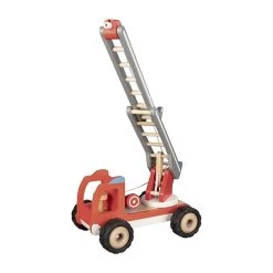 Goki 55789 Holzauto „Feuerwehr Leiterwagen“ Rot/weiss